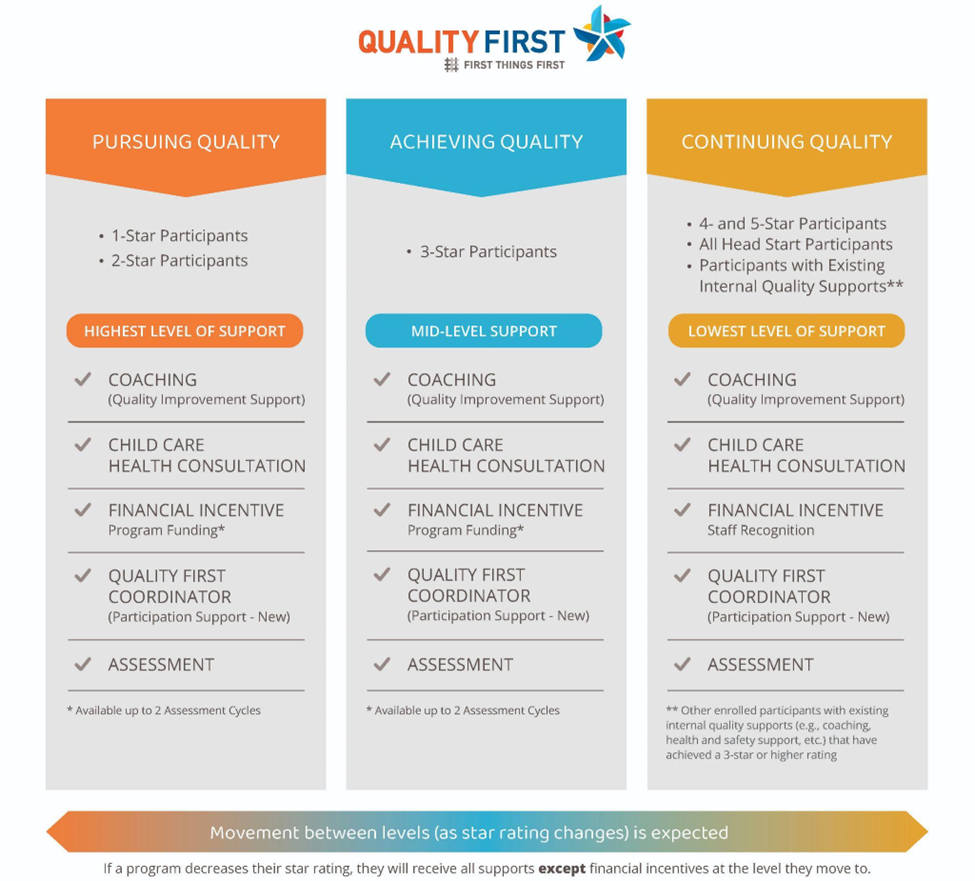 If you have questions about Quality First’s levels of support, don’t hesitate to contact us. Connect with us at QualityFirst@FirstThingsFirst.org or 602.771.5000.